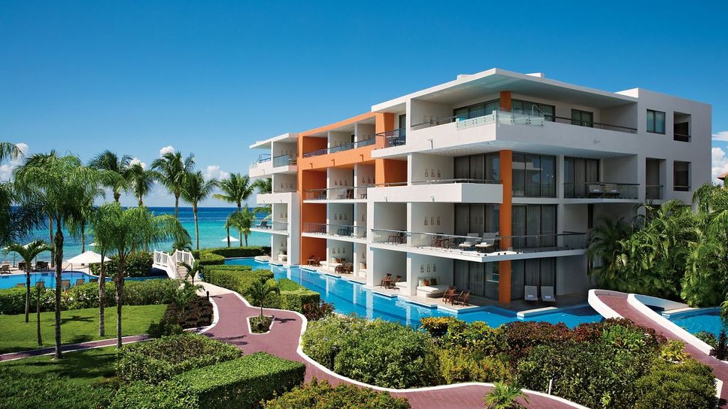 Free flow access to Sunscape Sabor Cozumel enhances the luxury experience by adding five additional restaurants, three bars, and facilities. The warmly decorated suites come with terraces or balconies, flat-screen TVs, and whirlpool tubs, plus free Wi-Fi and minibars. Some have sea views, rooftop solariums, lap pools, and/or swim-in access. Club suites add the use of a private lounge. There is 24/7 room service. There are 3 bars and 5 restaurants, as well as a fitness room, a spa, 3 outdoor pools, and a private beach. Other amenities include live entertainment, kayaking, and tennis.